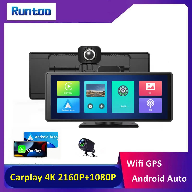 10.26 인치 DVR 4k 대시 캠 대시 보드 자동차 휴대용 무선 카플레이 안드로이드 라디오 멀티미디어 GPS 1080p, 나이트 비전 대시 카메라