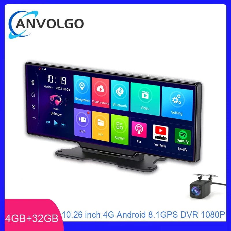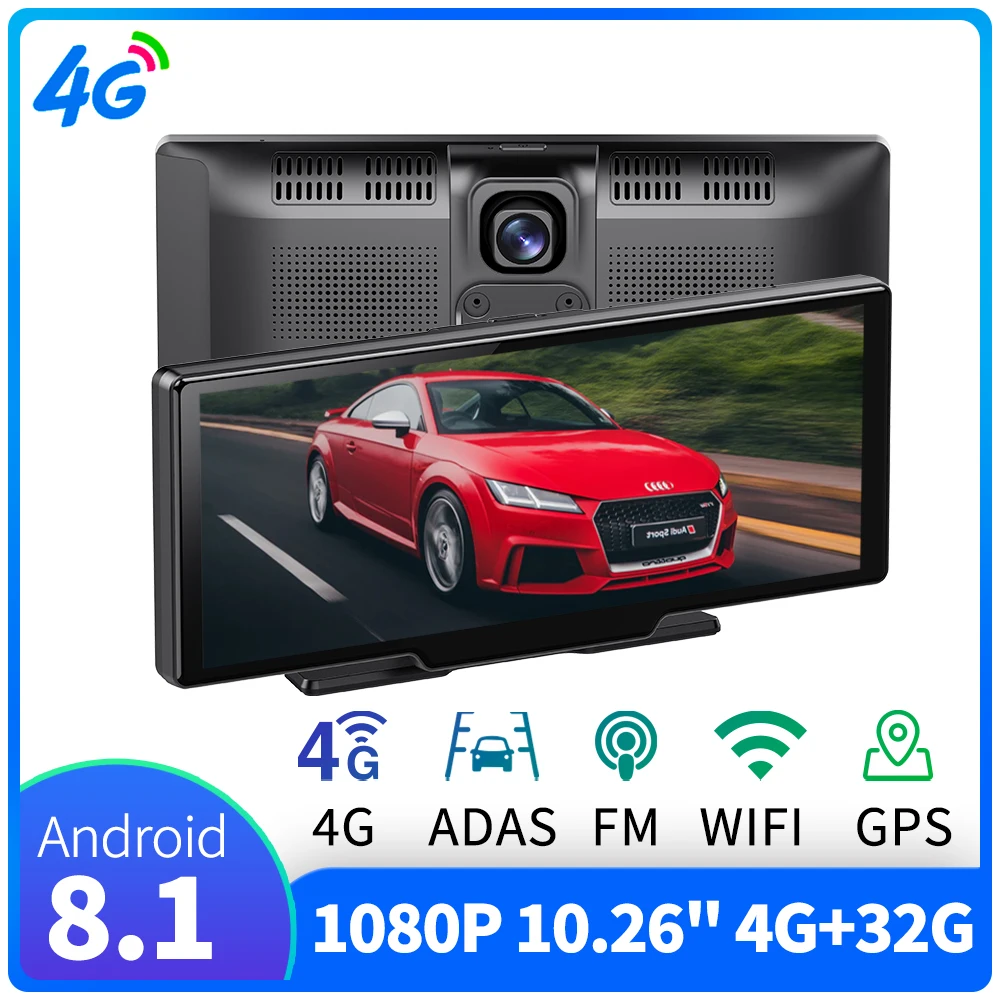 10.26 인치 대시 캠 4G + 32G 안드로이드 8.1 자동차 Dvr 카메라 대시 보드 FHD 대시 캠, GPS 와이파이 디지털 비디오 레코더 듀얼 렌즈